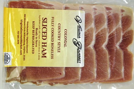 Virginia Gourmet Country Ham Slices - Pre-sliced for your convenience. An 8oz package typically contains anywhere from 6-8 slices of country ham.